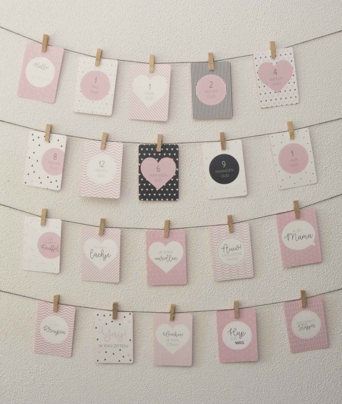 Unieke mijlpaalkaarten om je baby’s eerste jaar mee in beeld te brengen! Beschikbaar in een jongens- en een meisjesvariant of in hip monochrome. Ook zijn er houten mijlpaalkaarten voor de baby beschikbaar.