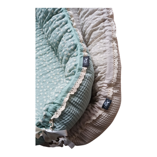 Het babynestje broderie, nieuw in het assortiment! Zoek je nog iets handigs voor je babyuitzet? Een babynestje gemaakt van wafelstof is onmisbaar. Het babynestje broderie heeft prachtige details! Leg het in de box of waar je wilt (wel op een veilige plek) zodat je kleintje kan rusten bij jou in de buurt! Helemaal leuk: neem er een bijpassend dekentje bij! Zo maak je van je baby nestje een complete set!