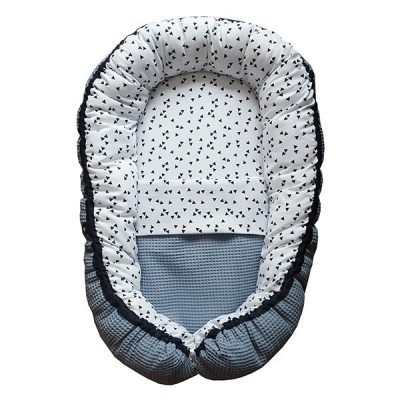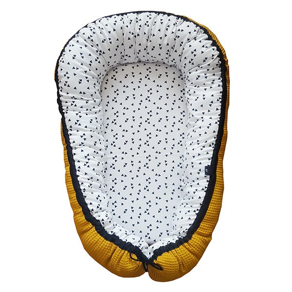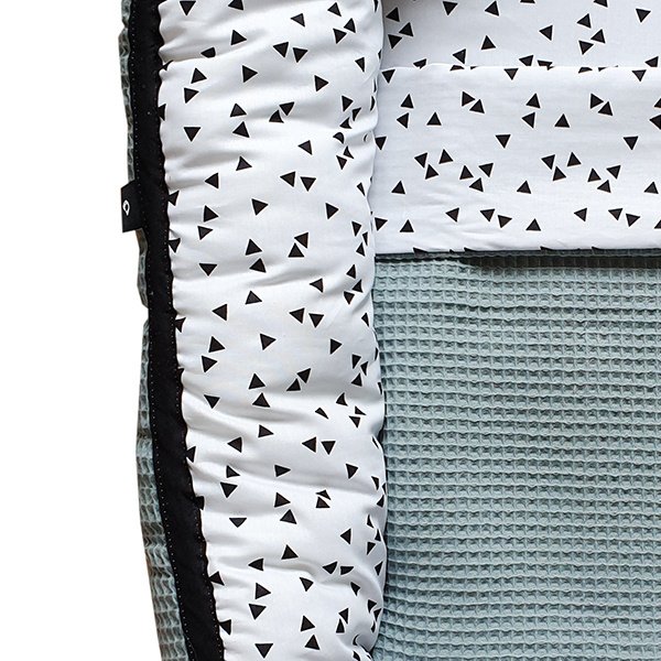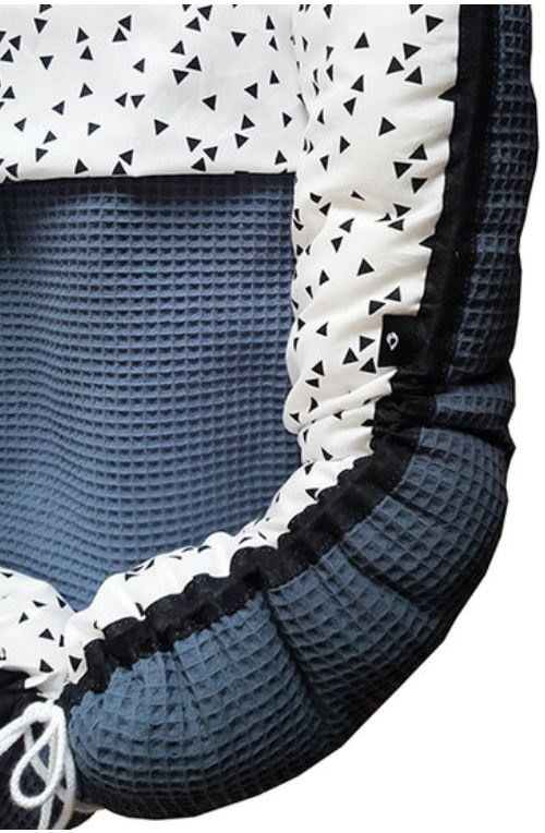 Het witte babynestje met zwarte driehoekjes is heerlijk hip en perfect te combineren met onze andere spulletjes van wafelstof zoals de ledikantdekens en aankleedkussenhoezen! Het babynestje is verkrijgbaar in elke kleur wafelstof die je wenst!