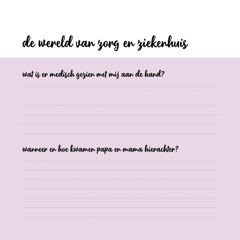 Het Bijzonder Babydagboek is ook een mooi kraamcadeau voor een zieke baby of een kraamcadeau voor een kindje dat te vroeg geboren is. Als ouders door een moeilijke tijd gaan is het prettig als ze hun gedachten kwijt kunnen in dit mooie invulboek. Als je een kraamcadeau zoekt voor een baby die ziek is of in het ziekenhuis moet blijven wil je misschien iets bijzonders geven om de ouders te laten weten dat je aan ze denkt. Geef dan dit speciale invulboek, een dagboek voor baby’s eerste jaar waarin ook ruimte is voor de ziekenhuisverhalen, verdriet en geluk, de gevoelens van papa en mama, deze horen erbij.
