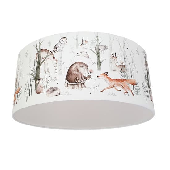 De lamp voor de babykamer met bosdieren print kan direct opgehangen worden want de pendel zit er al bij!