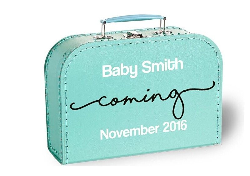 Geef dit originele cadeautje aankondiging zwangerschap aan je familie of vrienden die je graag op een originele manier over je zwangerschap wilt vertellen. Verras ze met dit leuke cadeau om je zwangerschap bekend te maken. Kies de kleur van het koffertje en verrassen maar! Voorbeelden van de kleuren zie je hier!