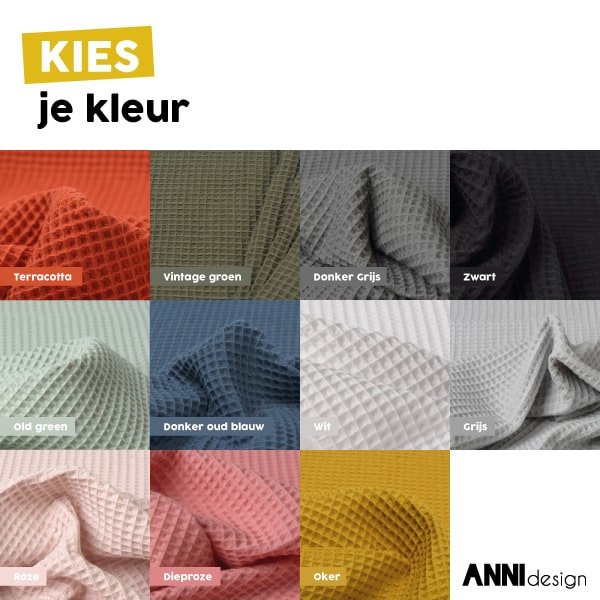 De kleur wafelstof voor het commode mandje kun je zelf kiezen, je kunt kiezen uit: