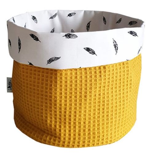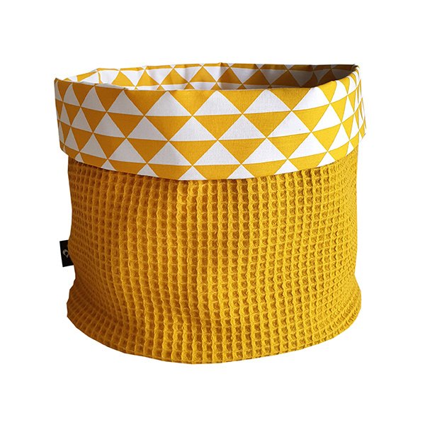 Het commodemandje okergeel driehoek kun je ook combineren met andere kleuren wafelstof. Dit mandje past goed op de commode zodat je er je luiers en/of andere producten in kwijt kunt. Het staat ook vooral erg leuk :). Erg mooi in combinatie met onze aankleedkussenhoezen, dekens en andere producten.