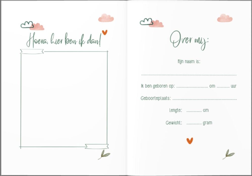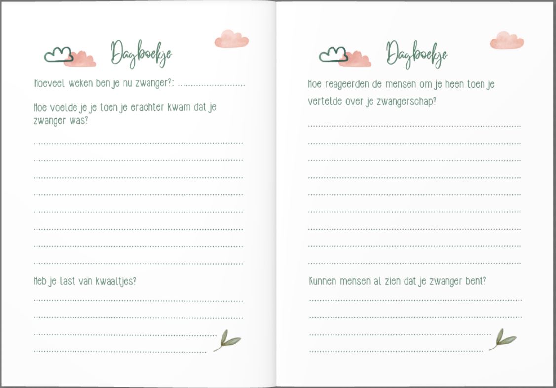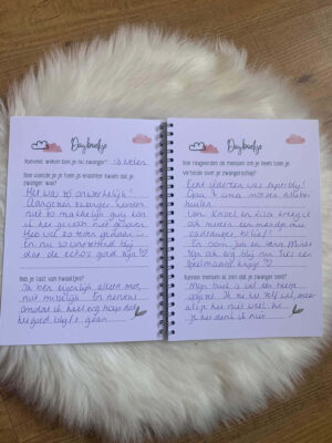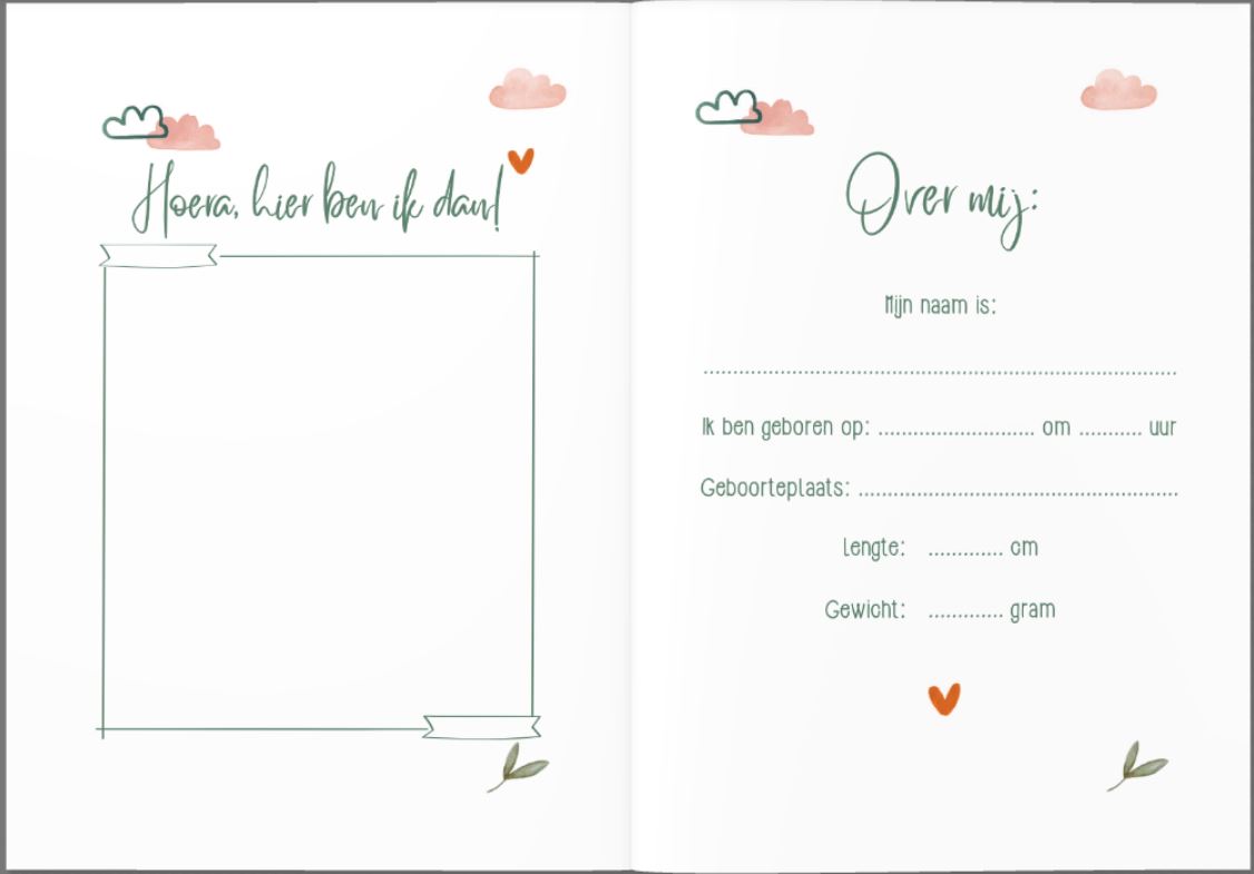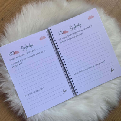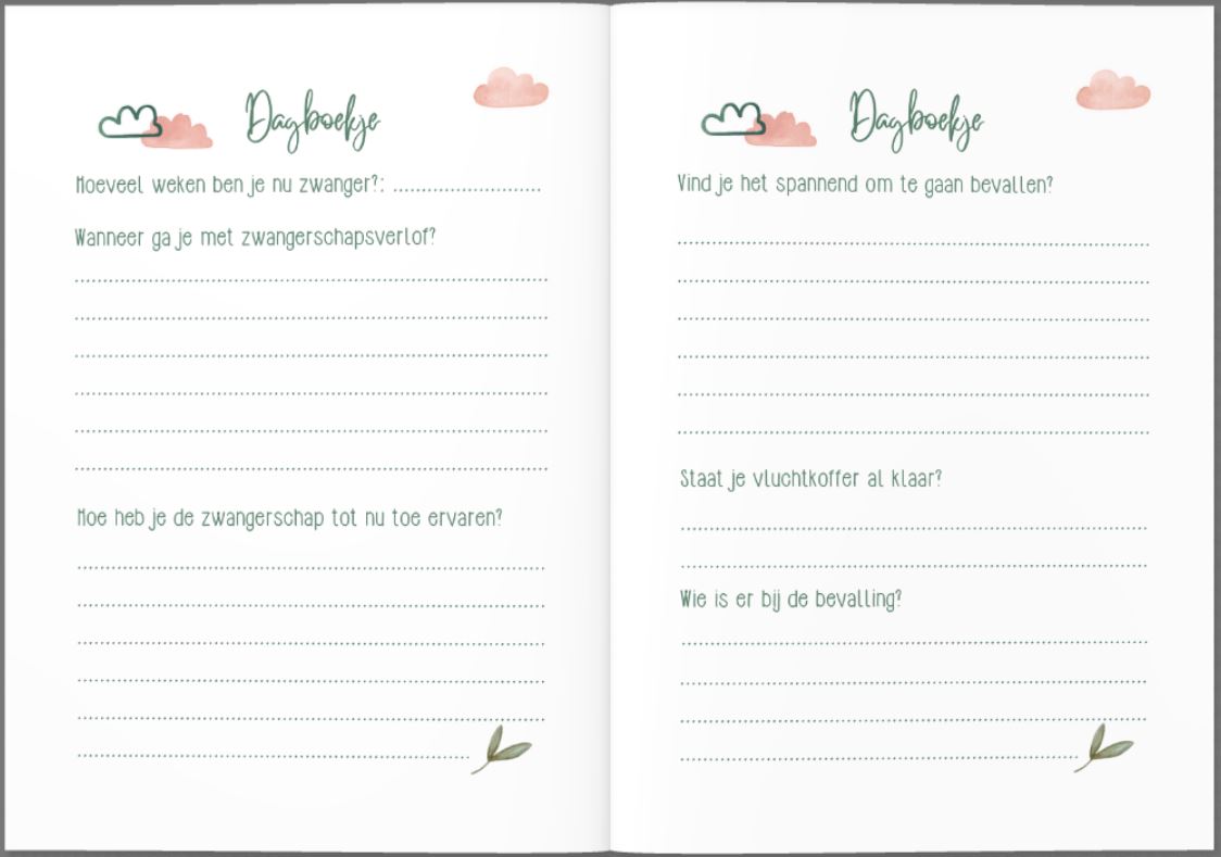 - Dagboekje – 2 pagina’s om te schrijven over de bevalling en de eerste periode met je kindje