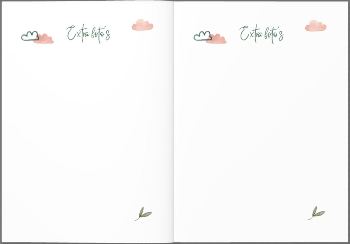 - 8 extra pagina’s voor (echo) foto’s of iets anders dat je kwijt wilt.