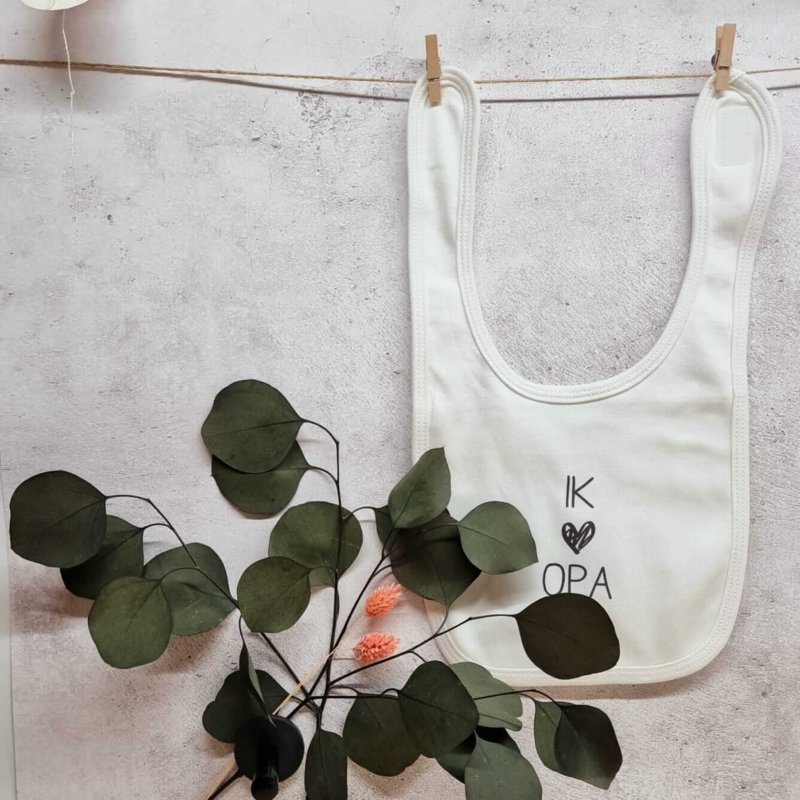 Het slabbetje Ik hou van opa is gemaakt van 100% katoen en wasbaar op 40 graden.