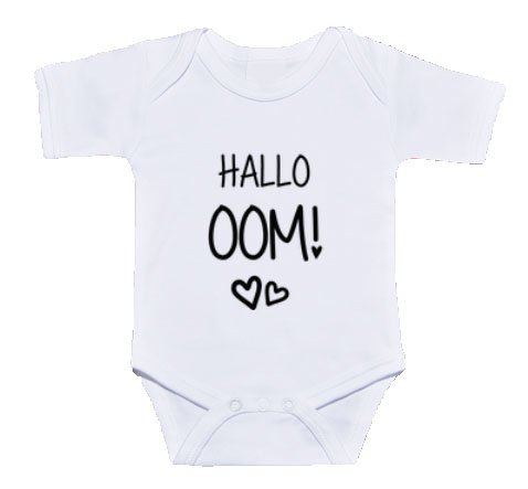 Het katoenen rompertje ter aankondiging van je zwangerschap is er in maat 50/56 en heeft korte mouwtjes.
