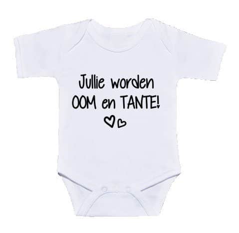 Het nieuws “Jullie worden oom en tante” is de moeite waard om op een bijzondere manier te vertellen. Wil je de aanstaande oom en tante vertellen dat je zwanger bent? En wil je dit het liefst doen met een leuk cadeautje? Geef ze dit schattige rompertje met de mededeling: Jullie worden oom en tante!