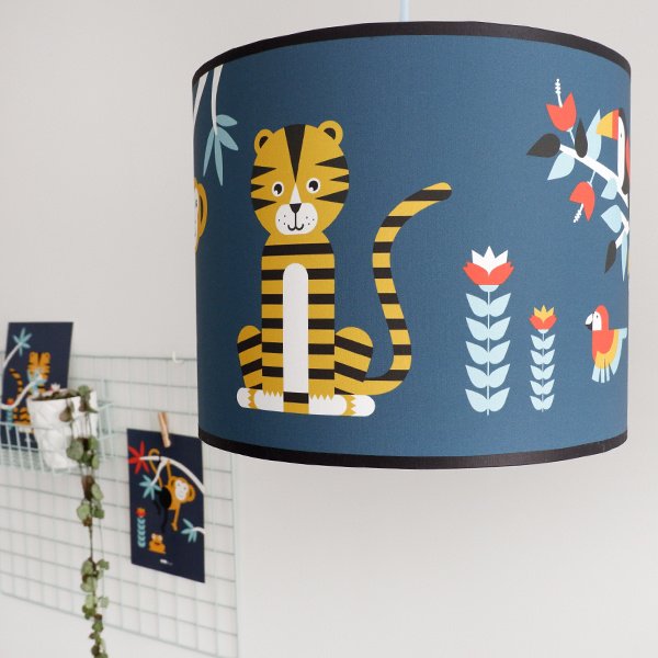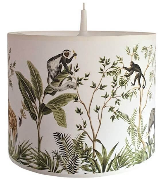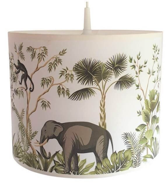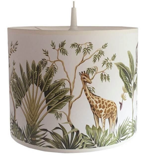 De hanglamp voor de babykamer met jungle print kan direct opgehangen worden want de pendel zit er al bij!