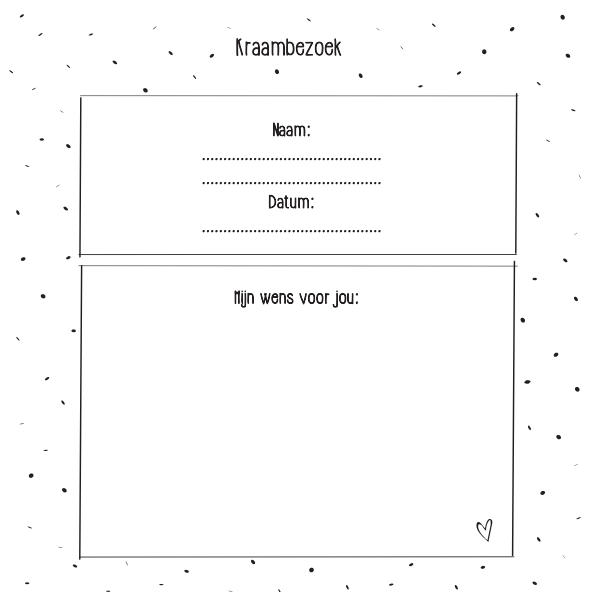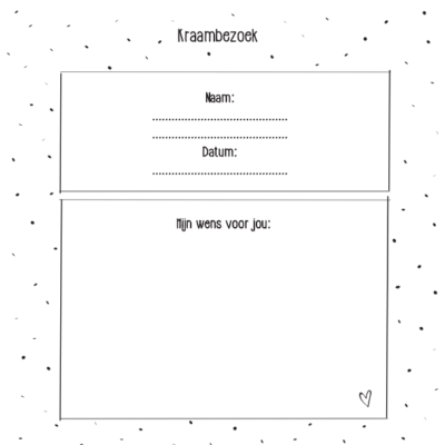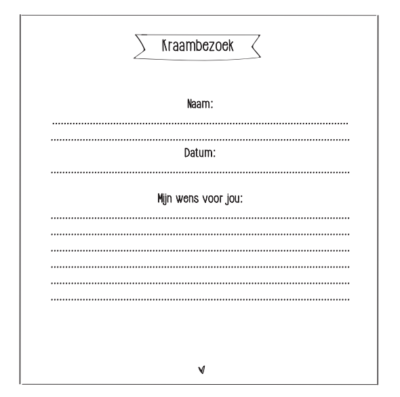 In het kraambezoekboek is ruimte voor 43 wensen van het kraambezoek en voor foto’s/kaartjes.