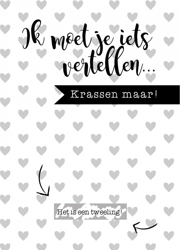 Voor de aankondiging van je zwangerschap van een tweeling kun je deze leuke kraskaarten gebruiken! Geef de aanstaande opa en oma of andere familie/vrienden dit kaartje en laat ze het vakje openkrassen! Hoe leuk is het om hun gezichten te bekijken!?
