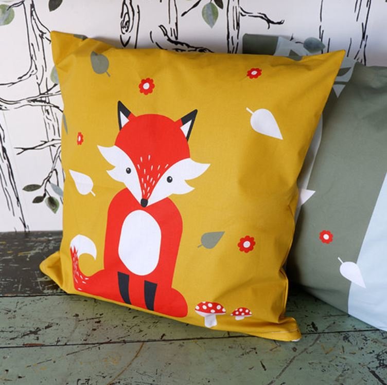 Dit kussen okergeel | vos is nieuw in onze collectie! Superschattig toch, dit vosje? Wissel de voor- en achterkant van het kussen eens af voor variatie in de babykamer! Dit kussen is ook hartstikke leuk voor de kinderkamer! Aan de onderkant van het kussen zit een rits, waardoor je het vulkussen er uit kunt halen en de kussenhoes kunt wassen!