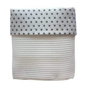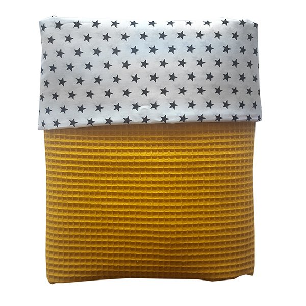 Je kunt deze ledikantdeken naar wens samenstellen! Je combineert de sterrenprint met een kleur wafelstof naar keuze. Zo creëer je jouw eigen unieke ledikantdeken! En het leukste is: de stofjes komen overeen met de stofjes van onze andere producten, zoals bijvoorbeeld de aankleedkussenhoezen! Zo kun je een perfecte combinatie van je ledikantdeken met de andere producten maken! Style jouw babykamer volledig naar eigen wens en inzicht! Twijfel je over de kleur? Neem dan even contact met ons op en vraag een staaltje wafelstof aan!