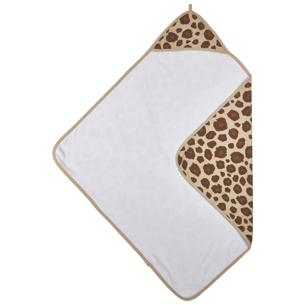 Mooie badcape van Meyco met panterprint. Je gebruikt de badcape met capuchon na het bad, het zwemmen, of gewoon lekker tijdens het knuffelen, je houdt je kindje heerlijk warm in de wikkeldoek.