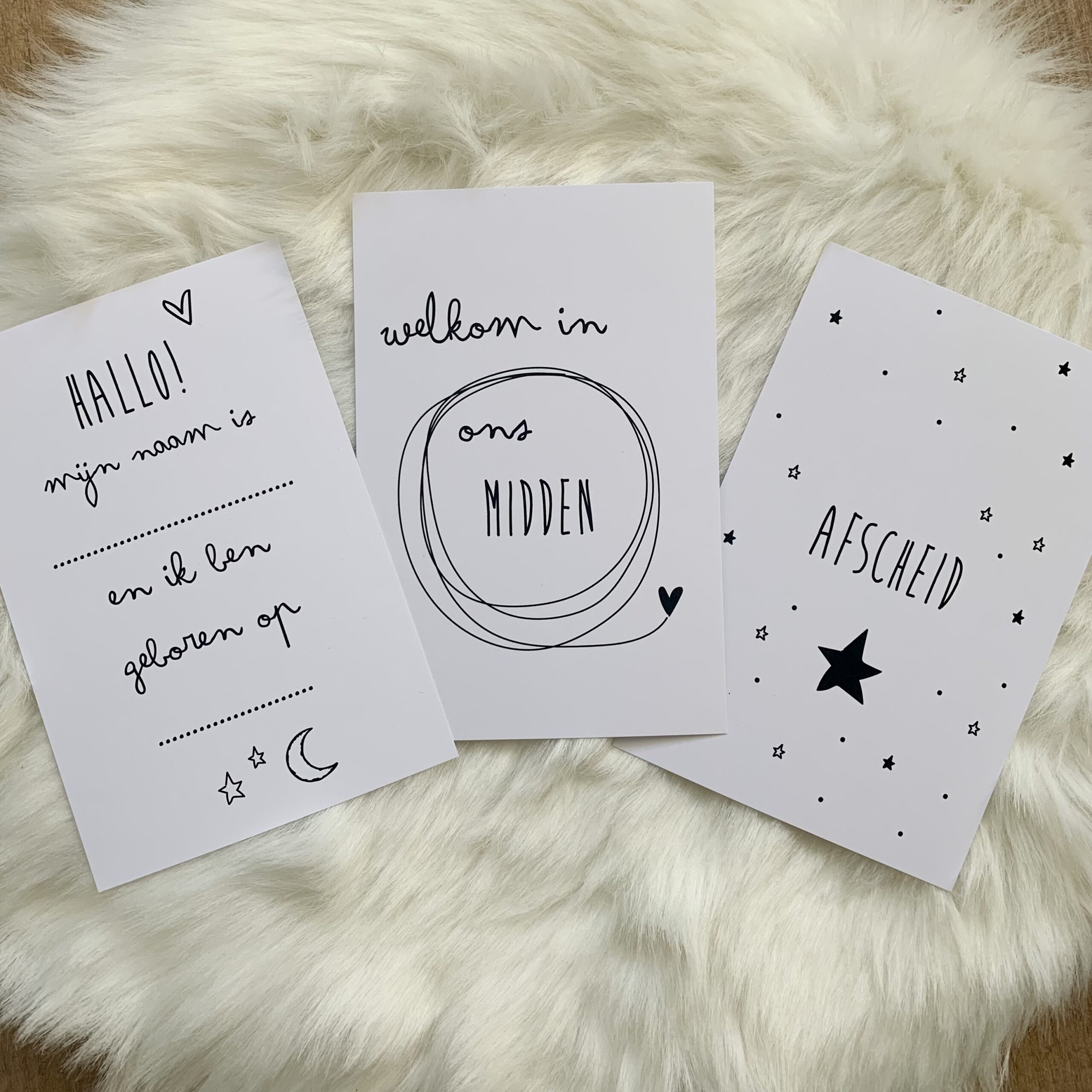 Hallo! Mijn naam is … en ik ben geboren op …. (kaartjes zijn beschrijfbaar) – Samen met mijn mama – Samen met mijn papa – Kennismaken – Dit wordt jouw kamertje – Wij kijken allemaal naar jou uit! – De dag dat wij samen kwamen – Welkom in ons midden – Hier woonde ik ook – Afscheid – Verhuizing – Met mijn brusje (2 keer) – Naar de peuterspeelzaal – Eerste schooldag – Ik kan mezelf tekenen – Mijn lievelingsknuffel – Lievelingsboek – Dit wil ik later worden: – Dit eet ik zo graag: – Ik kan mijn naam schrijven – Verjaardagen 1 t/m 12 jaar