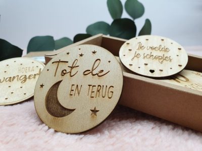 Deze prachtige mijlpaalkaarten zwangerschap hout helpen je om alle mijlpalen van je zwangerschap vast te leggen! Anders dan andere mijlpaalkaarten zwanger, deze mooie in hout gegraveerde mijlpalen! Als je iets anders wilt dan de standaard is dit de juiste keuze. Deze mijlpaalkaarten van hout zijn natuurlijk ook erg mooi als je op zoek bent naar een cadeautje bij zwangerschap.