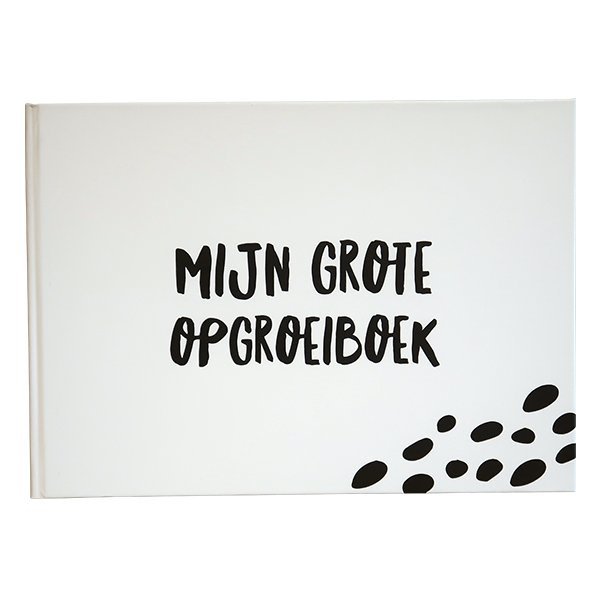 Mijn grote opgroeiboek heeft het A4 formaat en is hardcover, uitgevoerd in monochroom (zwart wit).