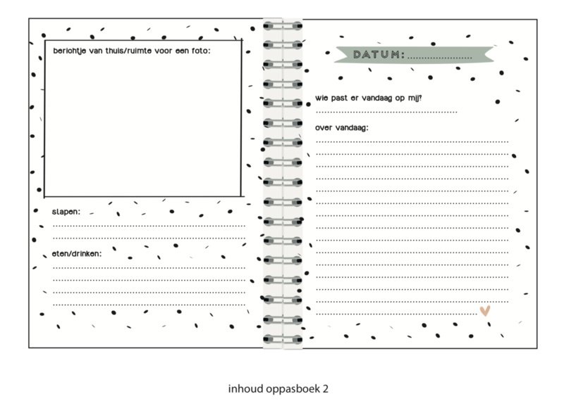 Een oppasboek wordt ook wel een heen en weer boekje genoemd, omdat je het makkelijk mee heen en weer neemt tussen verschillende oppaslocaties. Om deze reden is het oppasboekje A5 formaat, zodat het makkelijk in elke tas past!