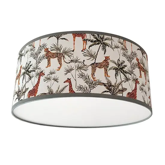 Deze toffe plafondlamp met jungle print is erg handig als het plafond van de kinderkamer of de babykamer laag is. Je voorkomt het stoten van je hoofd doordat de plafonniere heel dichtbij het plafond van de kinderkamer hangt en het geeft een geweldig mooi licht!