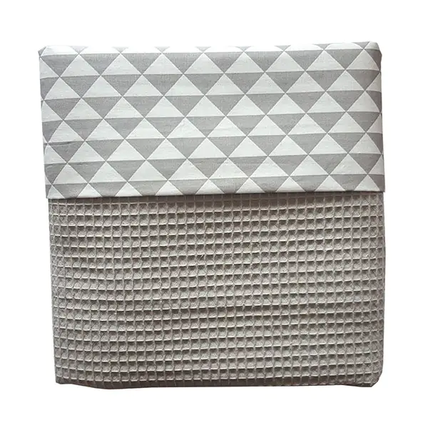 Prachtige wiegdeken die je ook kunt gebruiken als wandelwagendeken! Je combineert zelf de grijze print van de deken met een kleur wafelstof naar keuze!