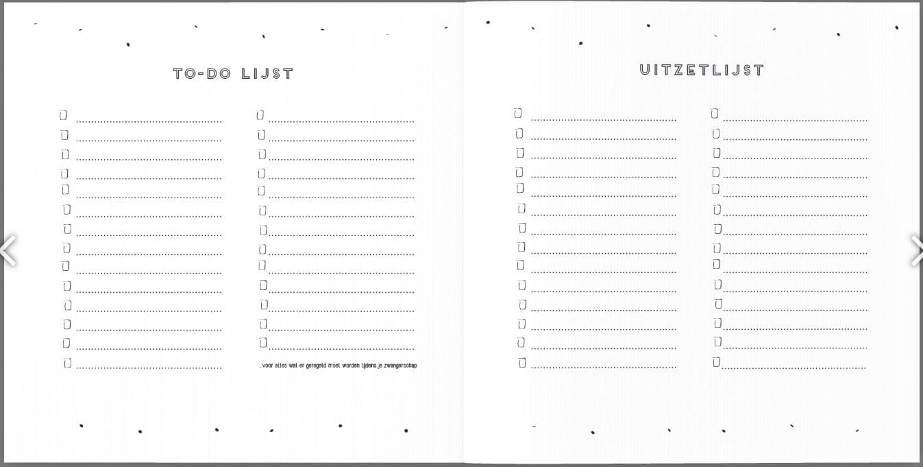 – To-do lijst zodat je op 1 plek bij kunt houden wat er nog dient te gebeuren voor de baby komt